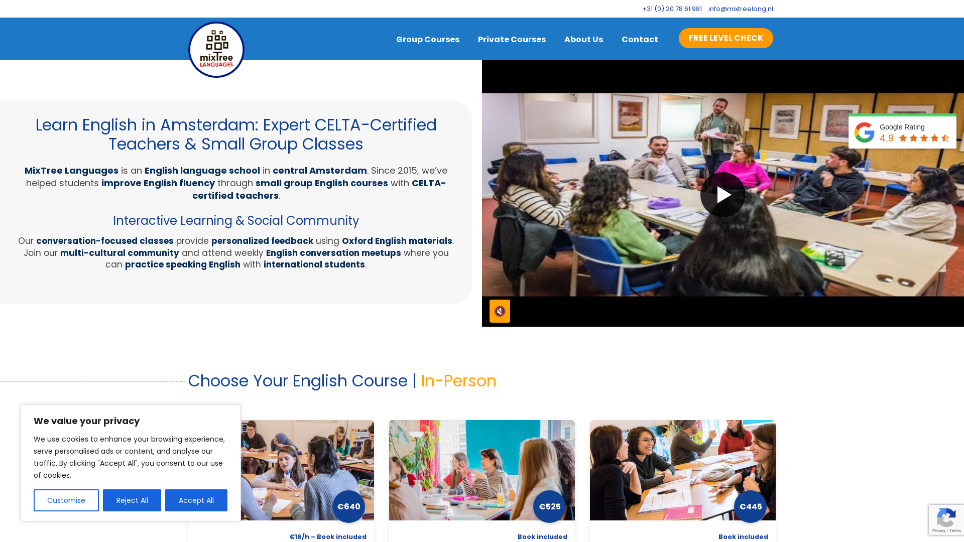MixTree Languages is an English language school in central Amsterdam. Since 2015, we’ve helped students improve English fluency through small group English courses with CELTA-certified teachers.