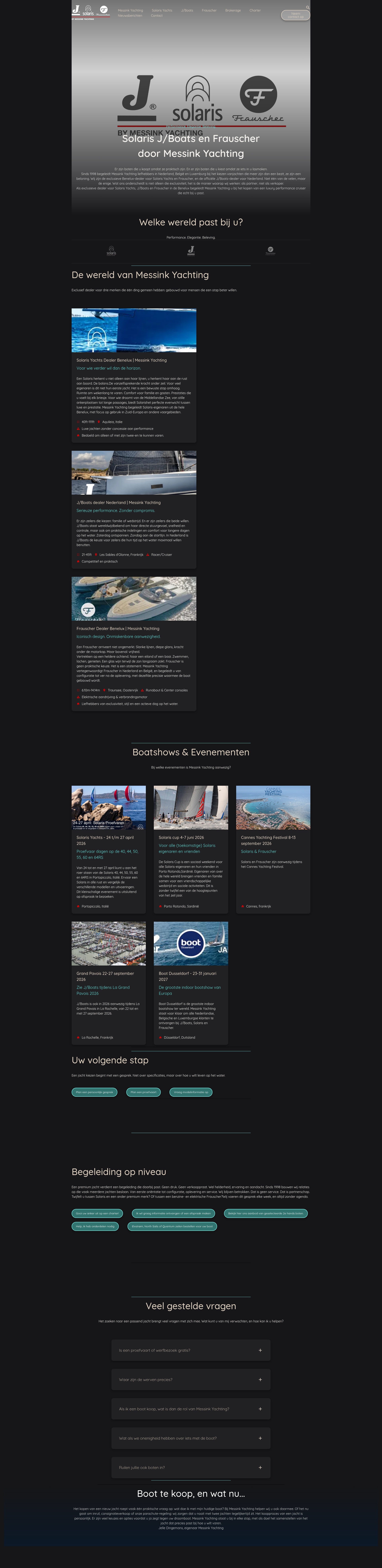 Messink Yachting handelt al sinds 1998 in kwalitatieve jachten en is exclusief dealer van J/Boats, Solaris Yachts en Frauscher in de Benelux. U kunt bij ons terecht voor nieuwe en gebruikte jachten en voor reserveonderdelen van deze merken.