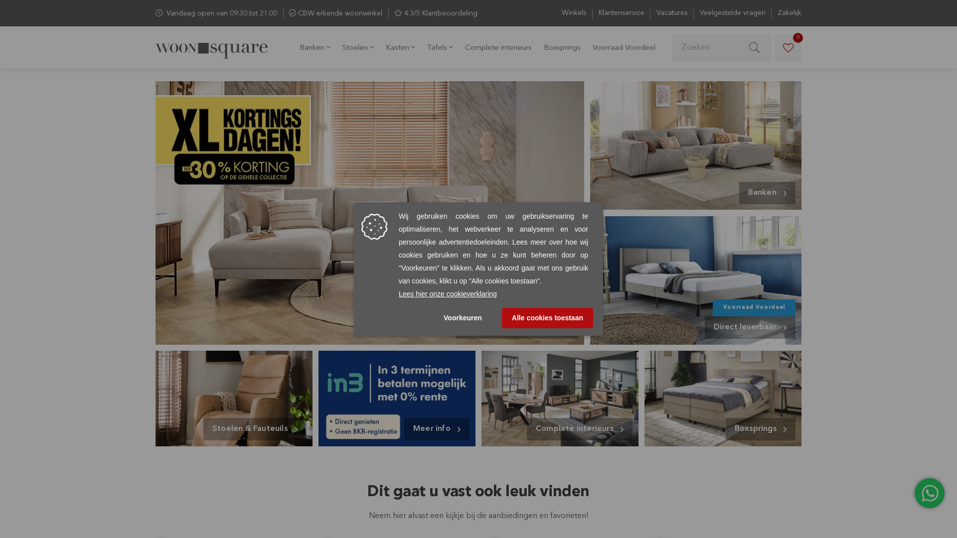 Voor de complete inrichting van uw woning gaat u naar Woonsquare: dé woonwinkel met kwaliteitsmeubelen voor elk budget. Bij ons vindt u niet alleen banken en hoekbanken, maar veel meer. U kunt ook slagen voor bijvoorbeeld complete interieurs, stoelen, fauteuils, tafels, opbergmeubelen en boxsprings.