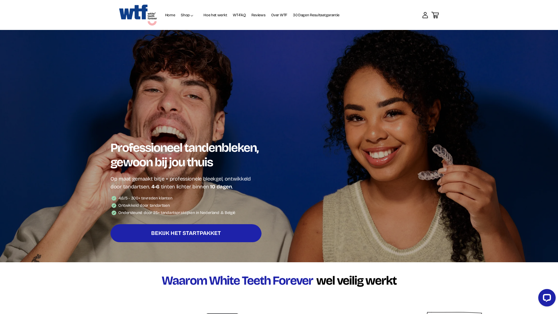 Maar ze dachten WTF, kunnen we onze expertise en ons netwerk van tandtechnische specialisten niet inzetten om een stralende witte glimlach thuis aan te bieden? Zo werd White Teeth Forever geboren. Ontworpen door tandartsen, voor jouw gemak en veiligheid. Designed bij Dentists.
